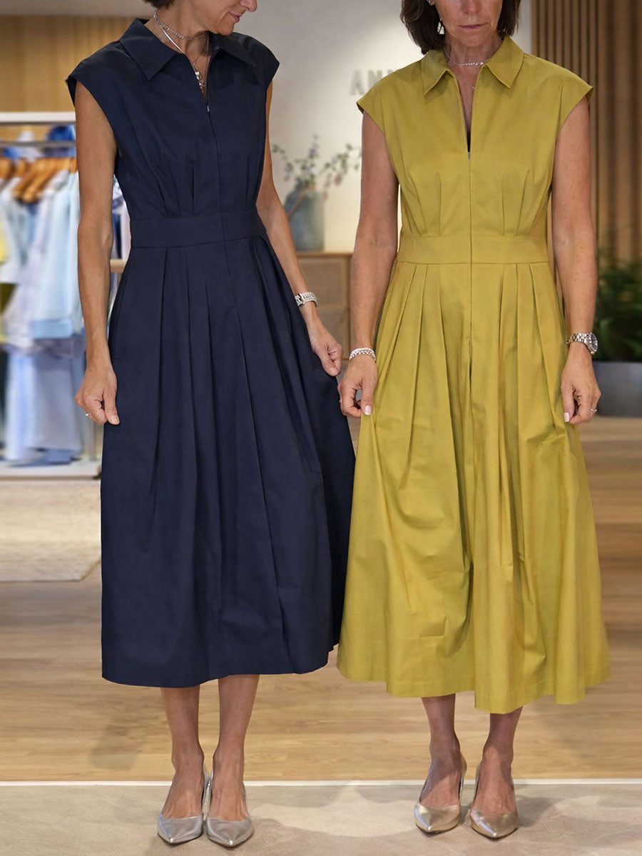 Women's Solid-color Shirt-collar Sleeveless Loose-fit Casual Cotton Dress