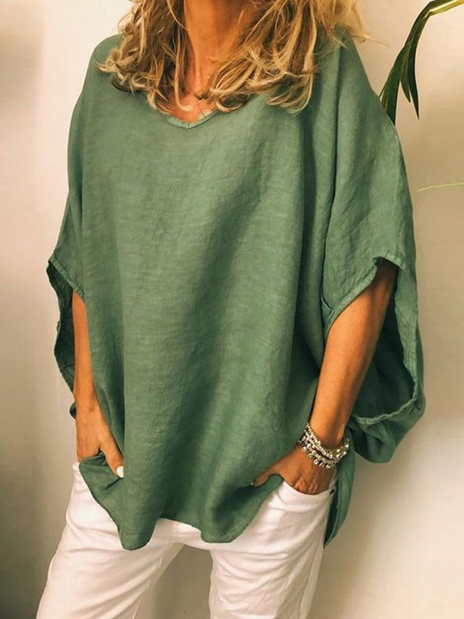 Women's Solid Color Cotton Linen Casual Shirt