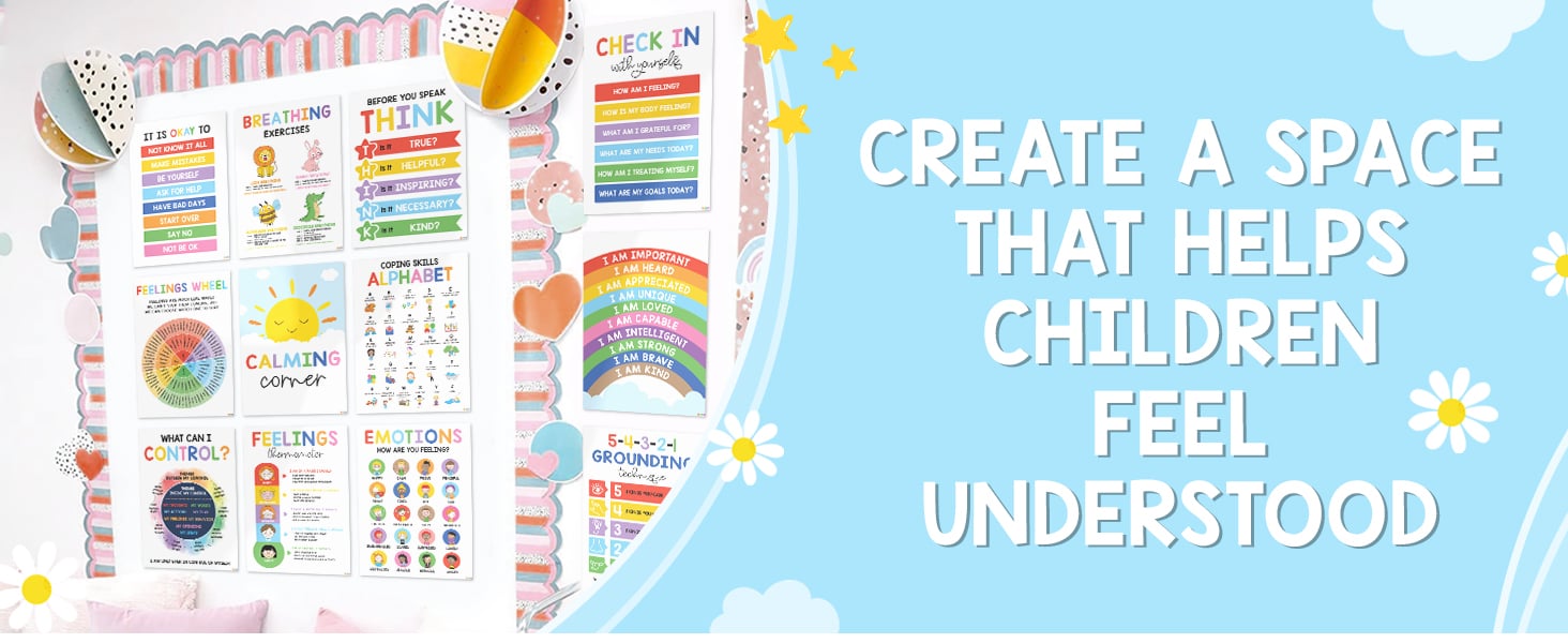 We are committed to helping you create a secure atmosphere where children can feel at ease sharing their thoughts and emotions. Order your calming corner posters today and start building a safe space for your kids.