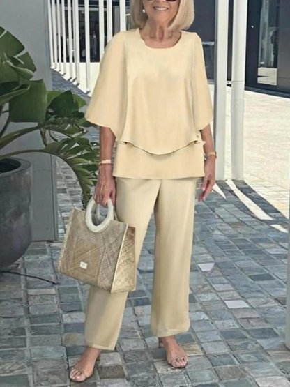Bell Sleeve Crew Neck Casual Loose Two-Piece Set