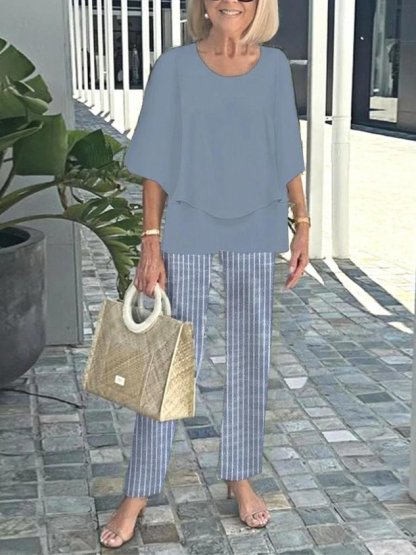 Crew Neck Elegant Striped Matching Outfit