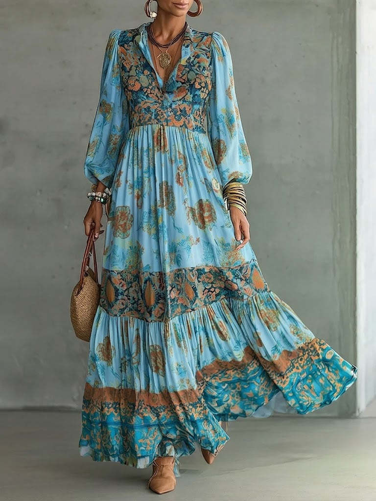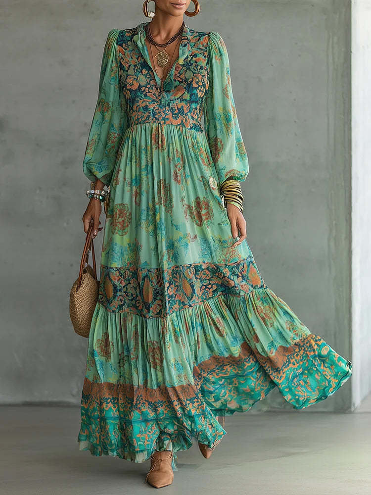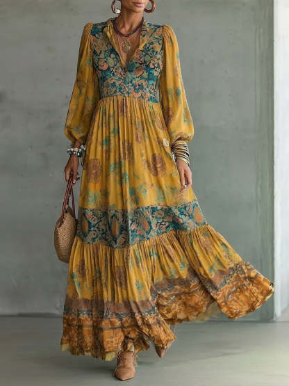 Women's Vintage Floral Print Casual Print Two-Piece Dress