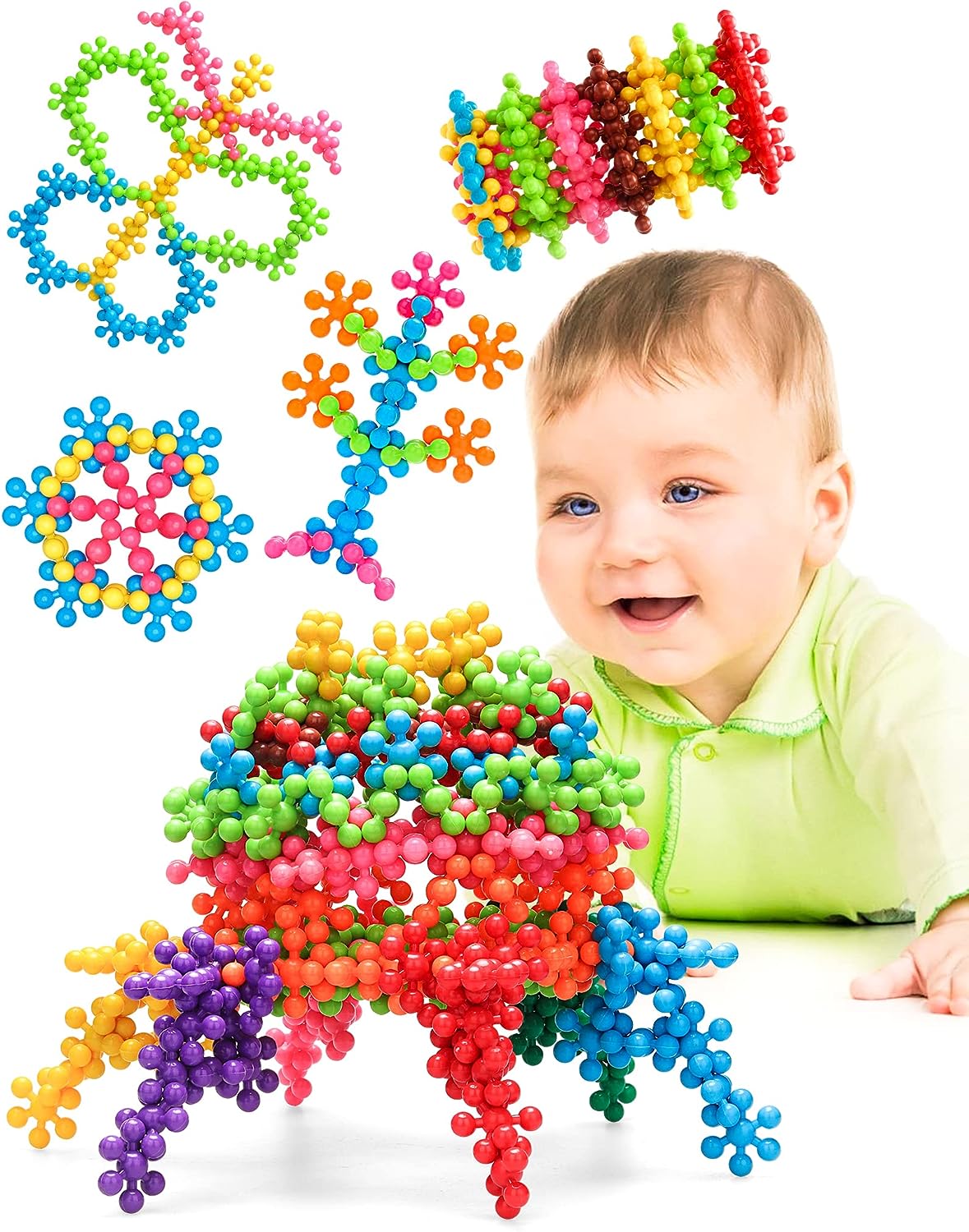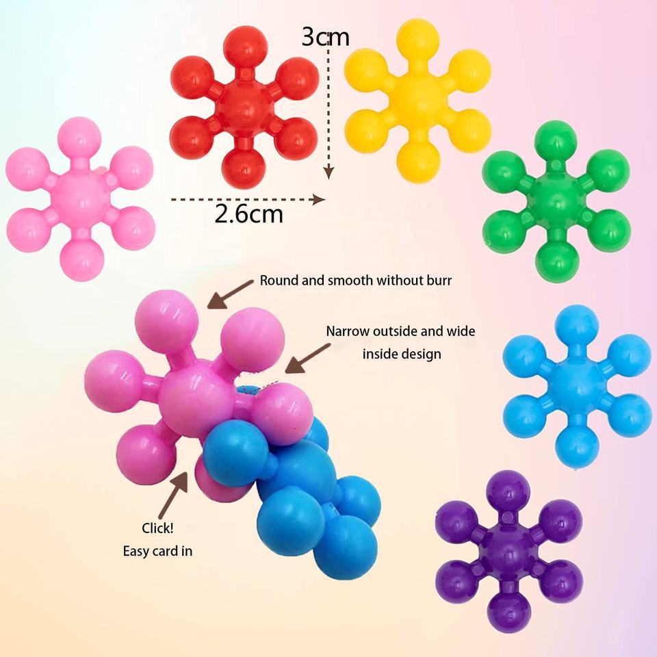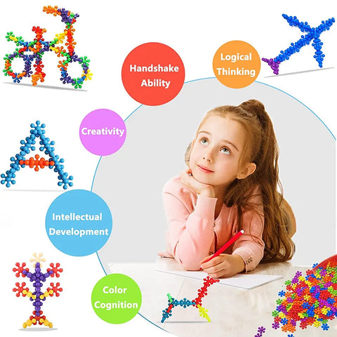💨【Cognitive Development】 Colorful snowflake-shaped plastic blocks are designed to interlock easily, so the little ones can make all kinds of crazy creations. The blocks are available in bold colors: pink, red, orange, yellow, light green, dark green, light blue and dark blue.