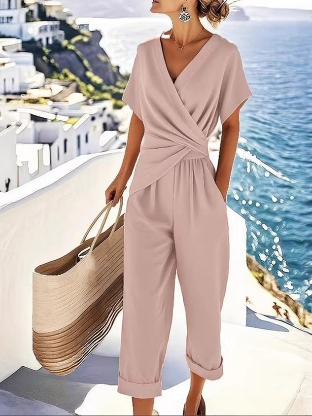 Relaxed And Casual Bohemian-style Linen Top And Printed Trousers Two-piece Set