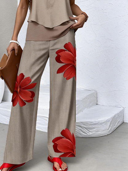 Women's Floral Print Casual Vest and Pants Two-Piece Set
