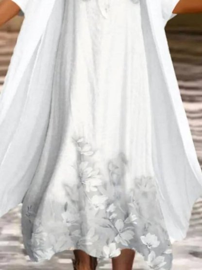 Women's Vintage Floral Print Casual Print Two-Piece Dress