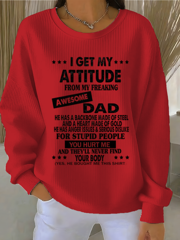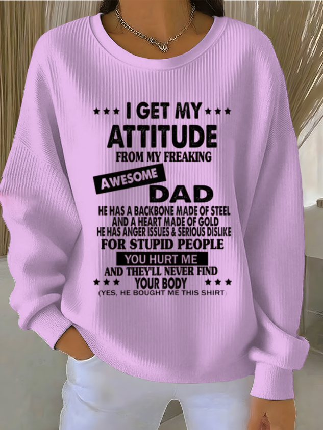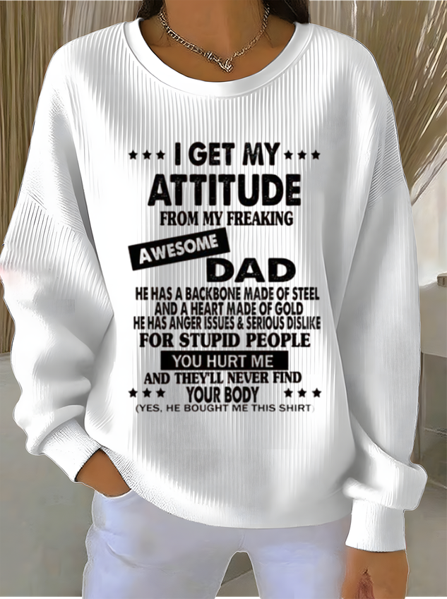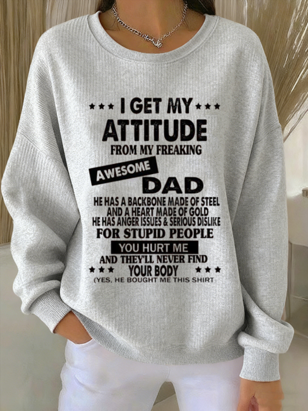 Crew Neck Letter Pattern Cotton-Blend Casual Sweatshirt