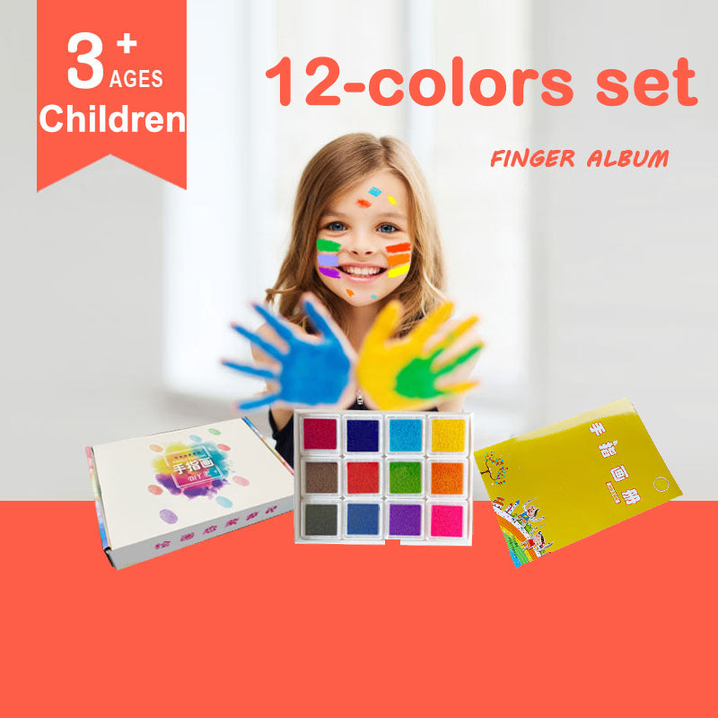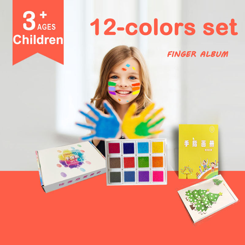- 12-color set (12-colored blocks+12 pattern stamps+Finger Drawing Book × 1)
