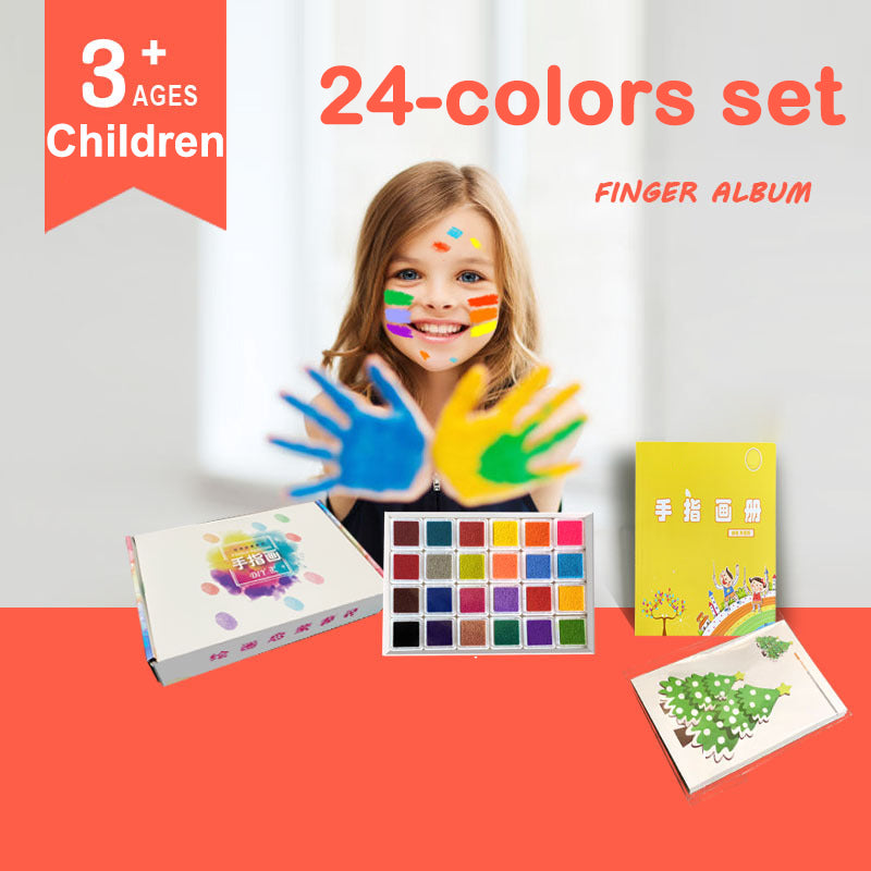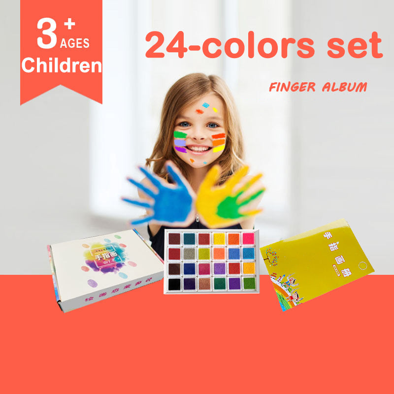 - 24-color set (24-colored blocks+12 pattern stamps+Finger Drawing Book × 1)