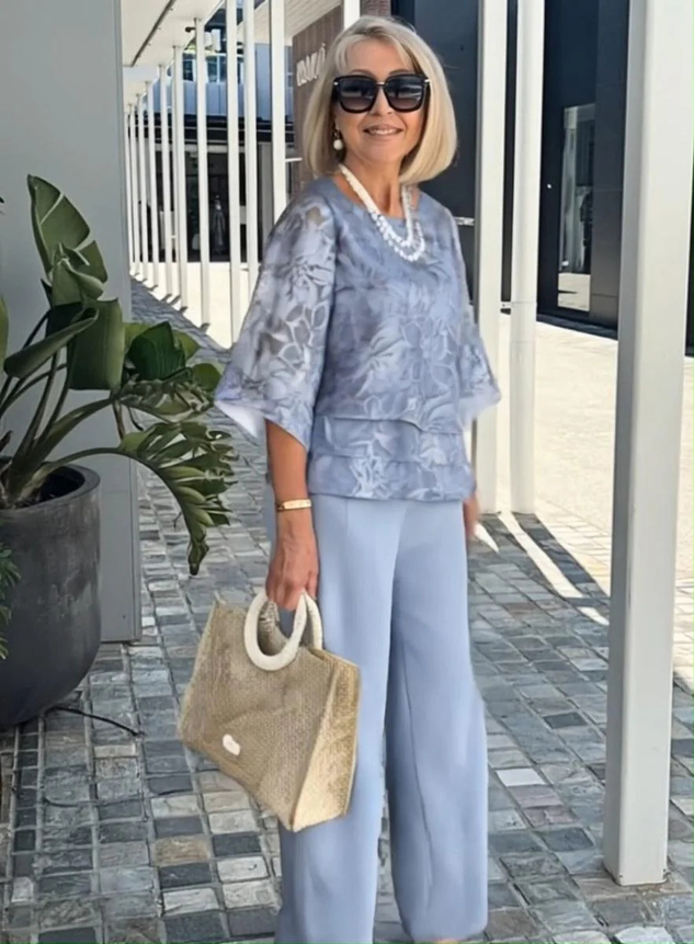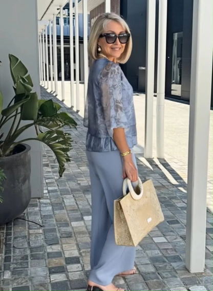 Relaxed And Casual Bohemian-style Linen Top And Printed Trousers Two-piece Set