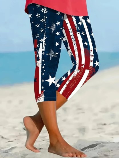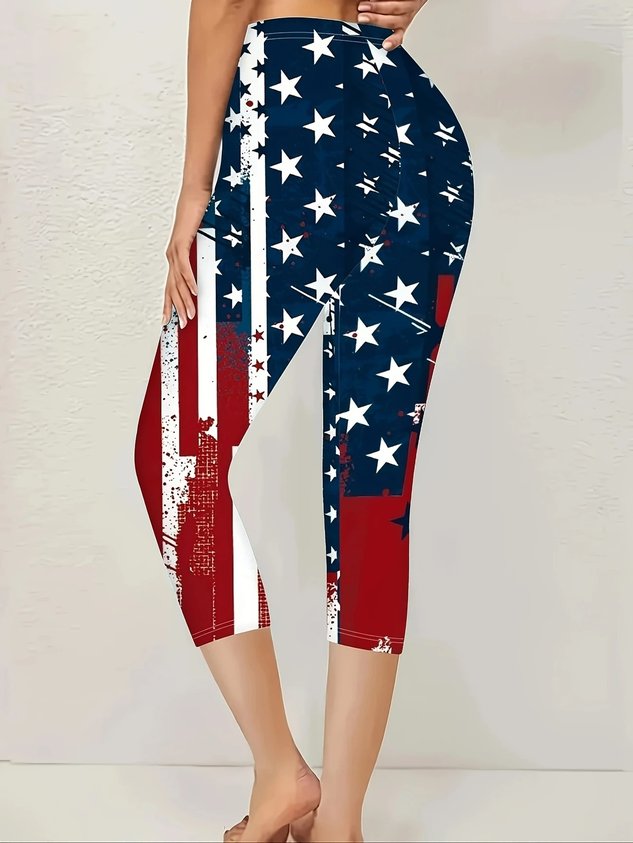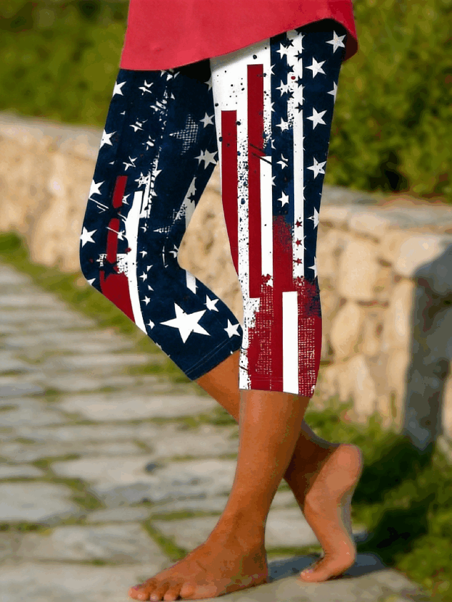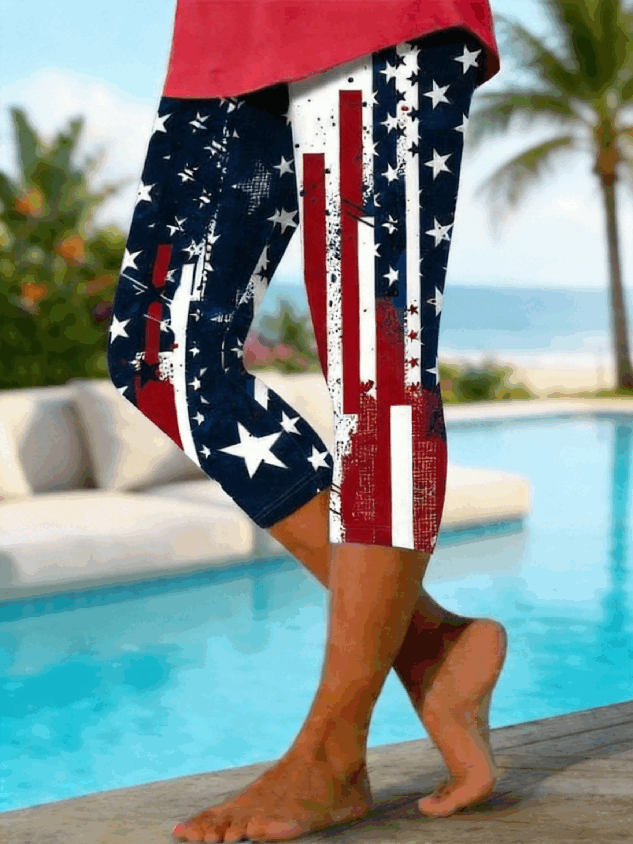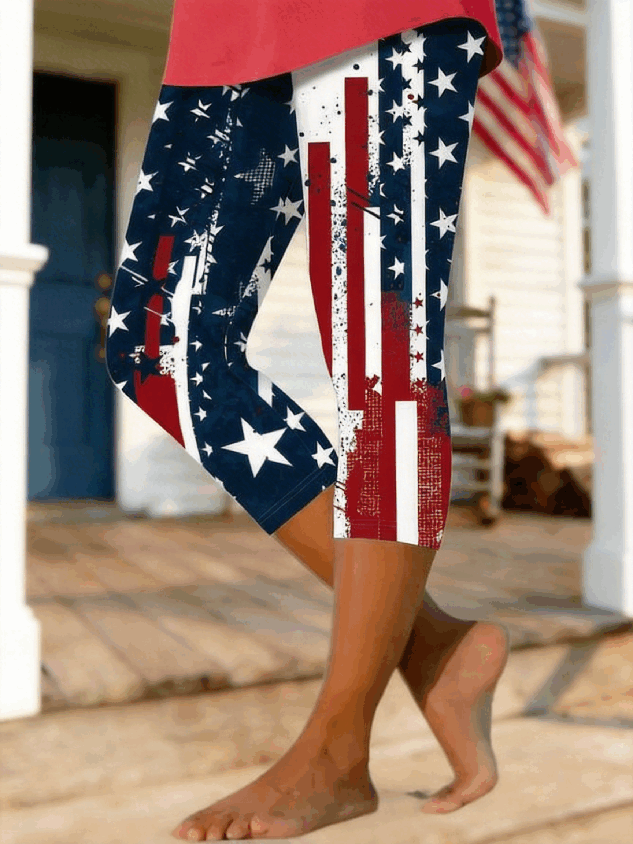 Women's H-Line Straight Pants Daily Going Out Pants Blue Casual Printing America Flag Spring/Fall Pants