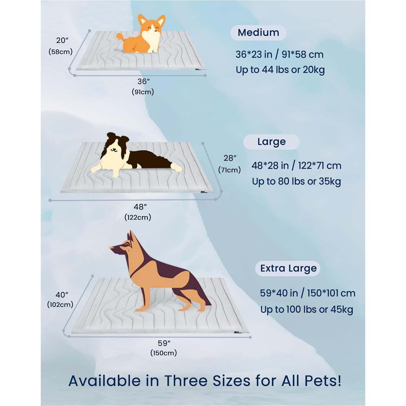 PORTABLE AND VERSATILE FOR ON-THE-GO USE: Lightweight and portable, the cooling mat for dog is ideal for travel. Whether your pet needs to cool down after exercise, relax at home, or stay comfortable on outdoor adventures, this mat is perfect. It folds easily and includes a handle for convenient carrying,making it an essential accessory for trips, hikes, or picnics. Keep your pet cool and happy wherever you go