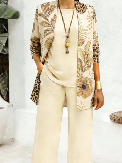 Relaxed And Casual Bohemian-style Linen Top And Printed Trousers Two-piece Set