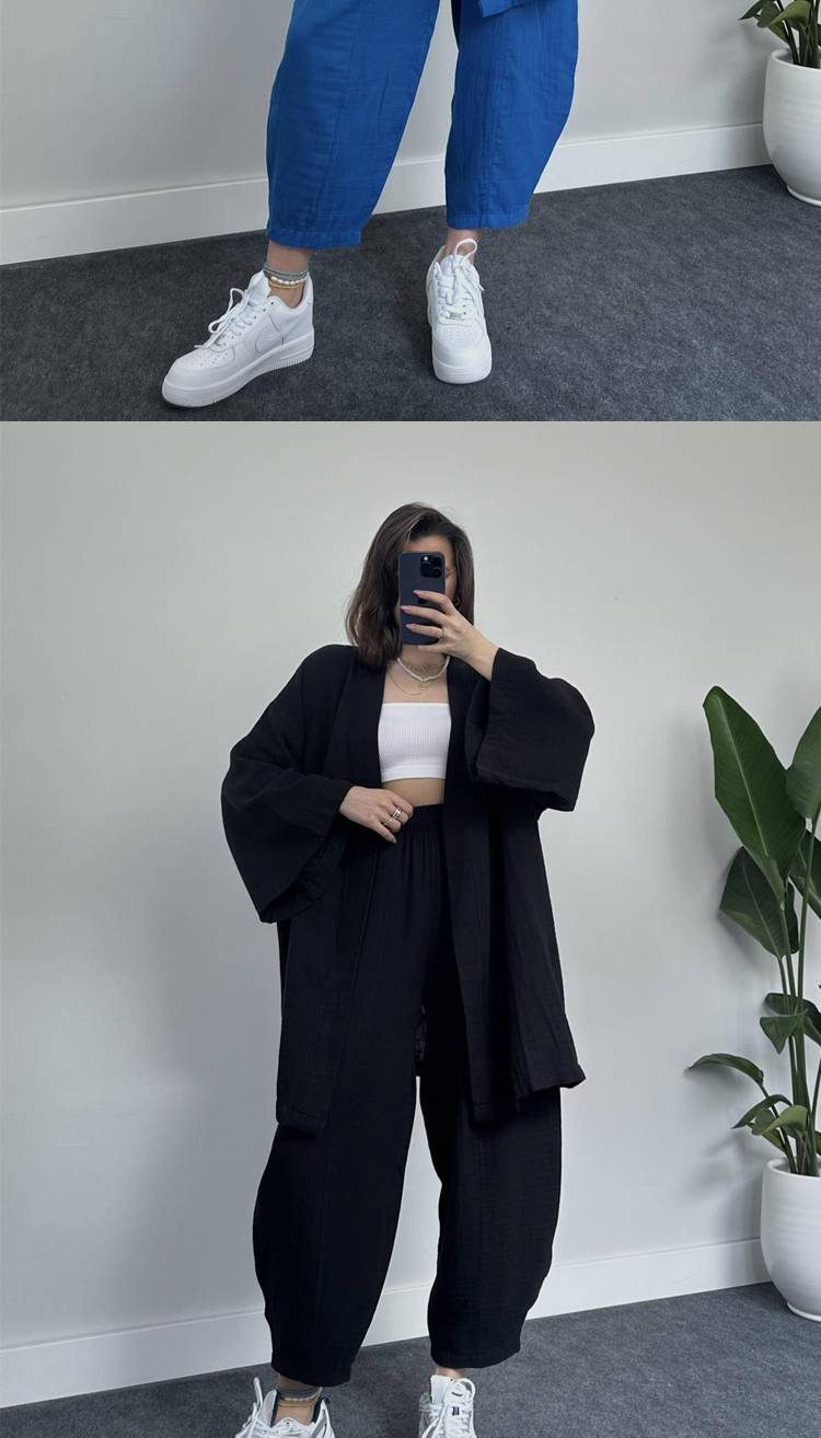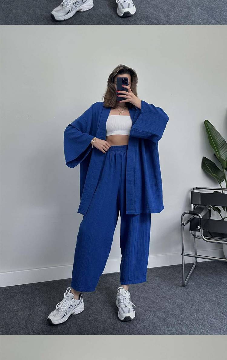 Bell Sleeve Crew Neck Casual Loose Two-Piece Set