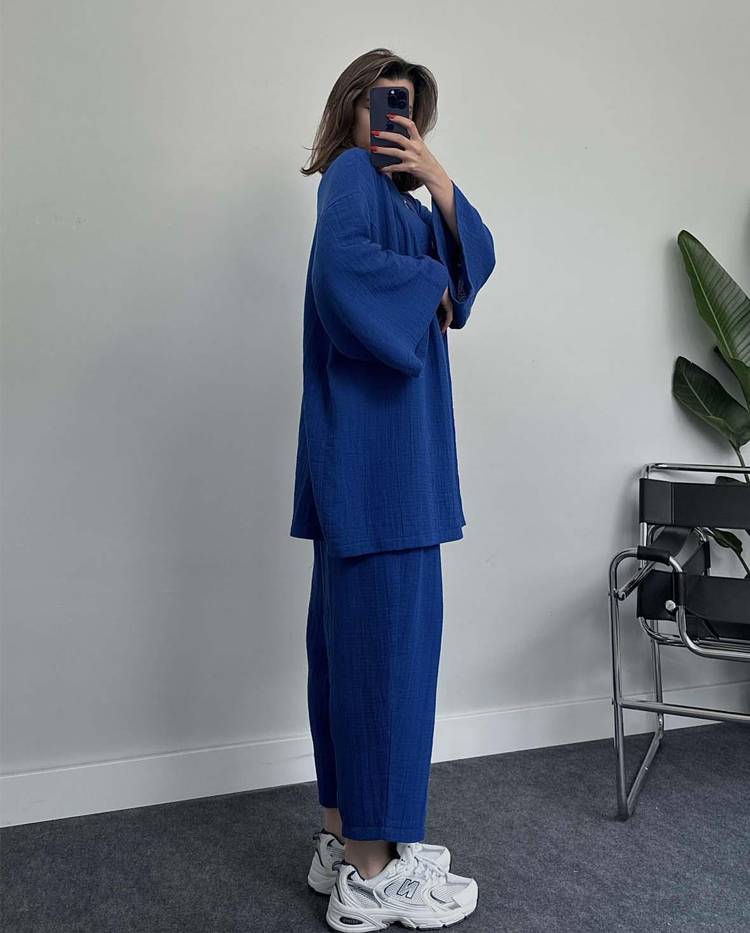 Casual V Neck Loose Plain Two-Piece Set