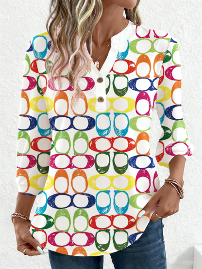 Loose V Neck Elegant Cotton T-Shirt