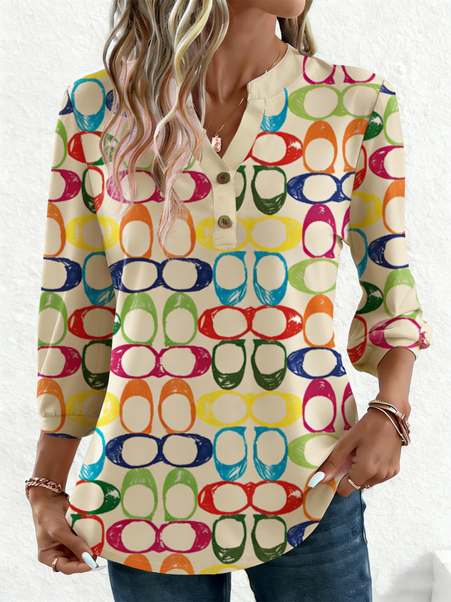 Relaxed And Casual Bohemian-style Linen Top And Printed Trousers Two-piece Set