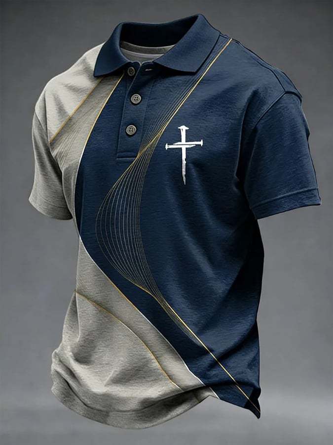 Men's Retro Faith Cross Print Casual Polo Shirt