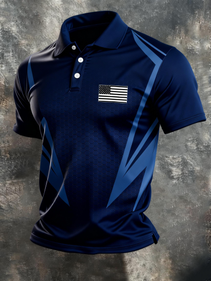 Men's Retro Patriot Color Block Polo Collar Short Sleeve