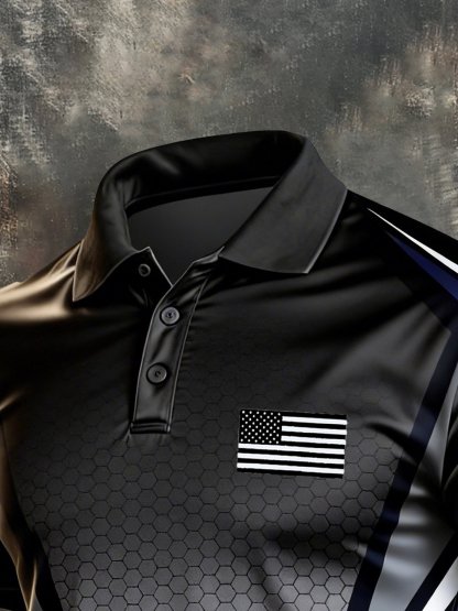 Men's 250th Anniversary National Flag Print Casual Waffle Fabric Polo Shirt
