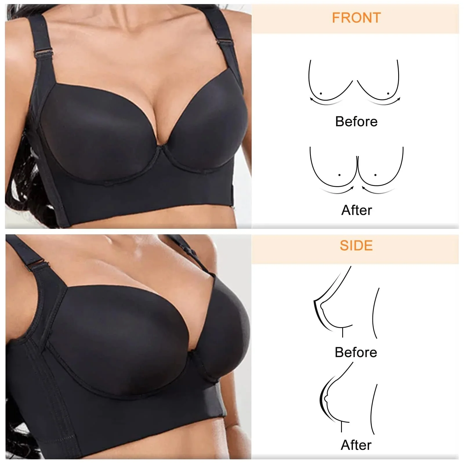 No matter what your body type is, our bras will fit snugly, no more side boob troubles!