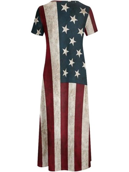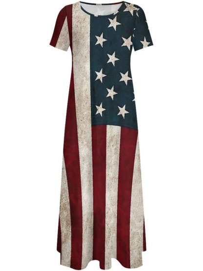 Women's Short Sleeve Summer As Picture Independence Day (Flag) Printing V Neck Daily Going Out Casual Midi A-Line Classic Dress