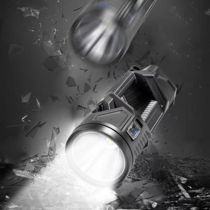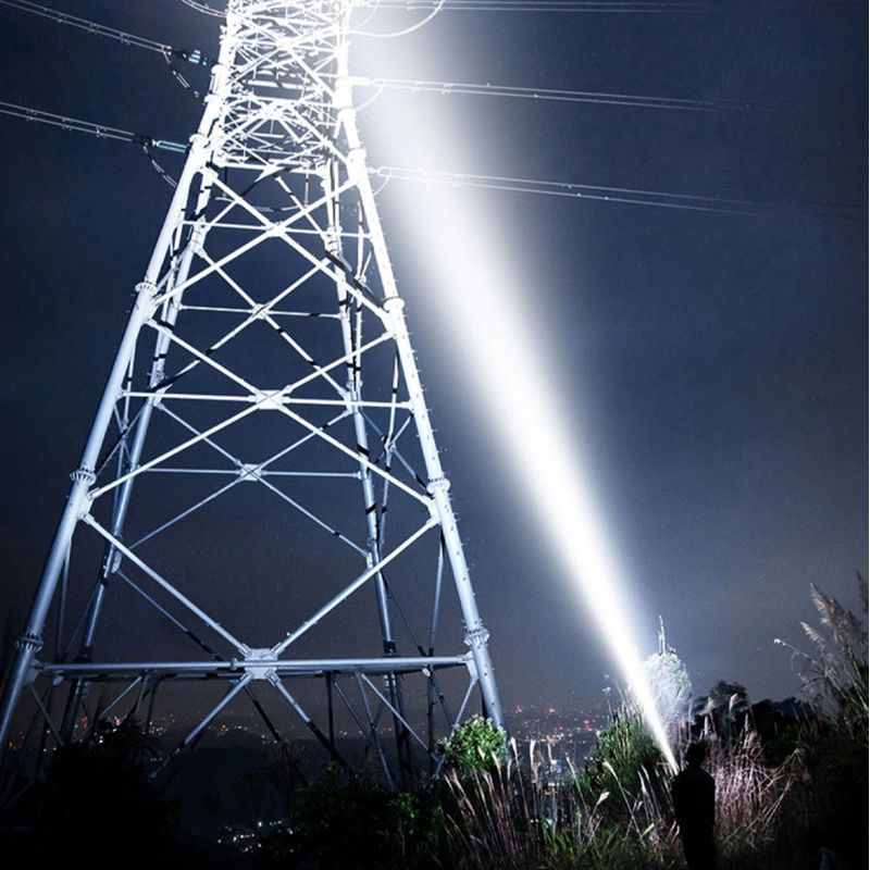 Rechargeable handheld spotlight flashlight has Ultra long endurance built in lithium battery capacity to guarantee recharge 100000 times+. Smart multiple protection (overcharge/ over discharge protection)3 blue indicator lights shows the ΒATTERY life (30%-60%-100%)