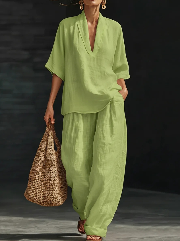 Bell Sleeve Crew Neck Casual Loose Two-Piece Set