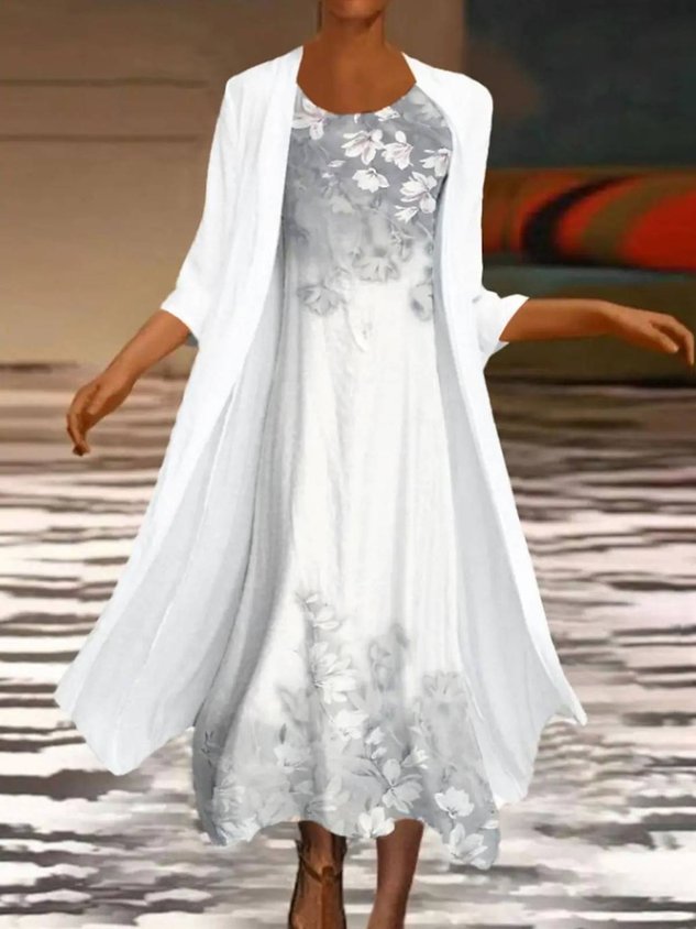 Women's Vintage Floral Print Casual Print Two-Piece Dress