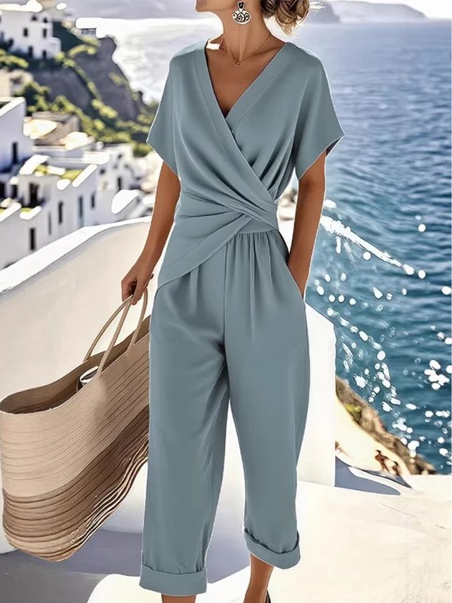 Women's Embossed Plain Daily Going Out Two-Piece Set Aqua Casual Summer Top With Pants Matching Set