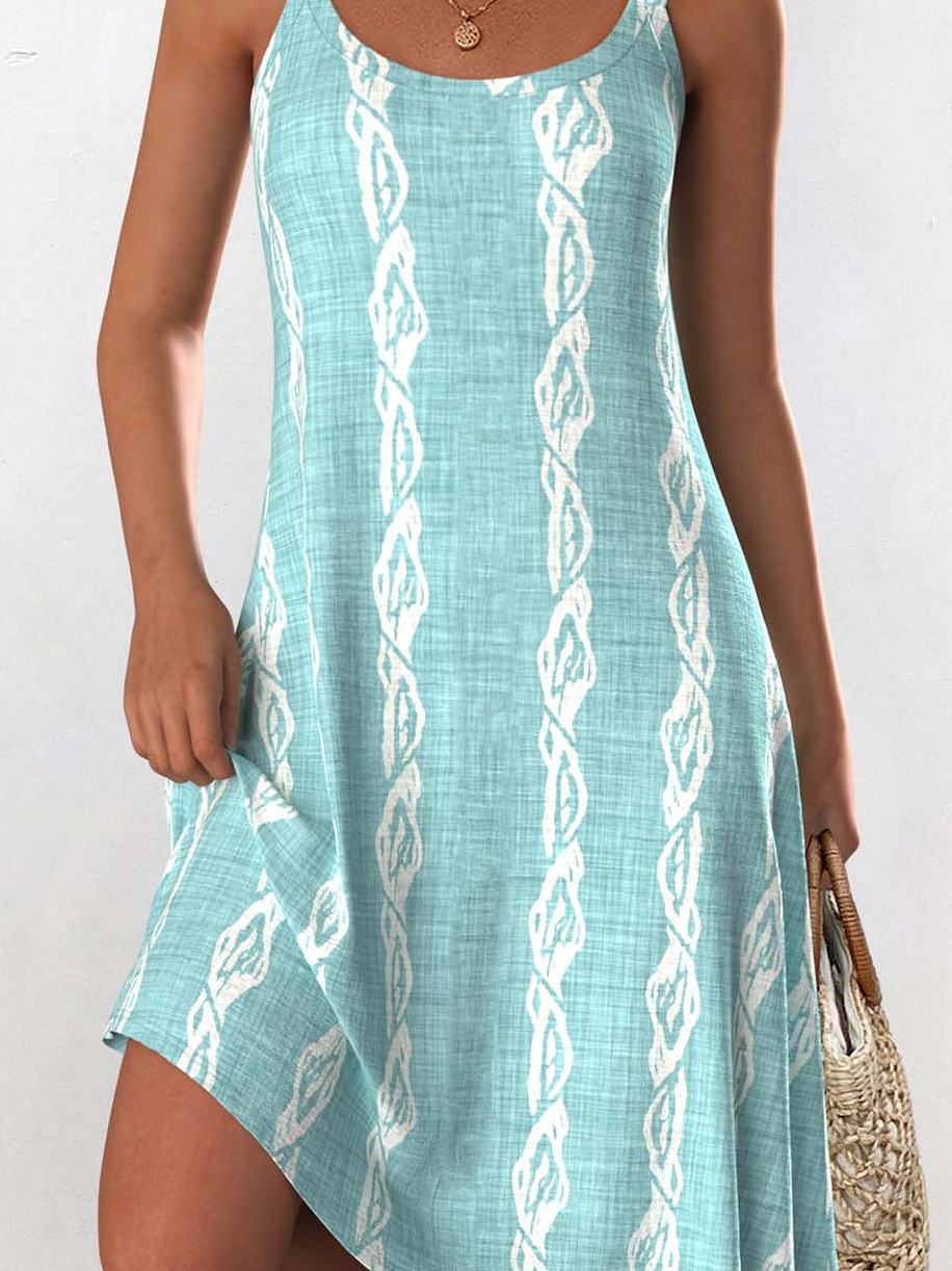🔥Hot sale🔥Women's Vintage Abstract Geometric Art Print Sleeveless Cotton Pocket Wrap Dress🔥Hot sale🔥