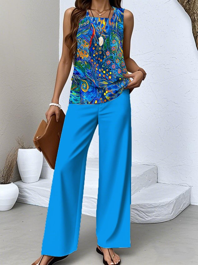 Women's Printing Floral Daily Going Out Matching Outfit Blue Casual Spring/Fall Multi-Piece Set Matching Set