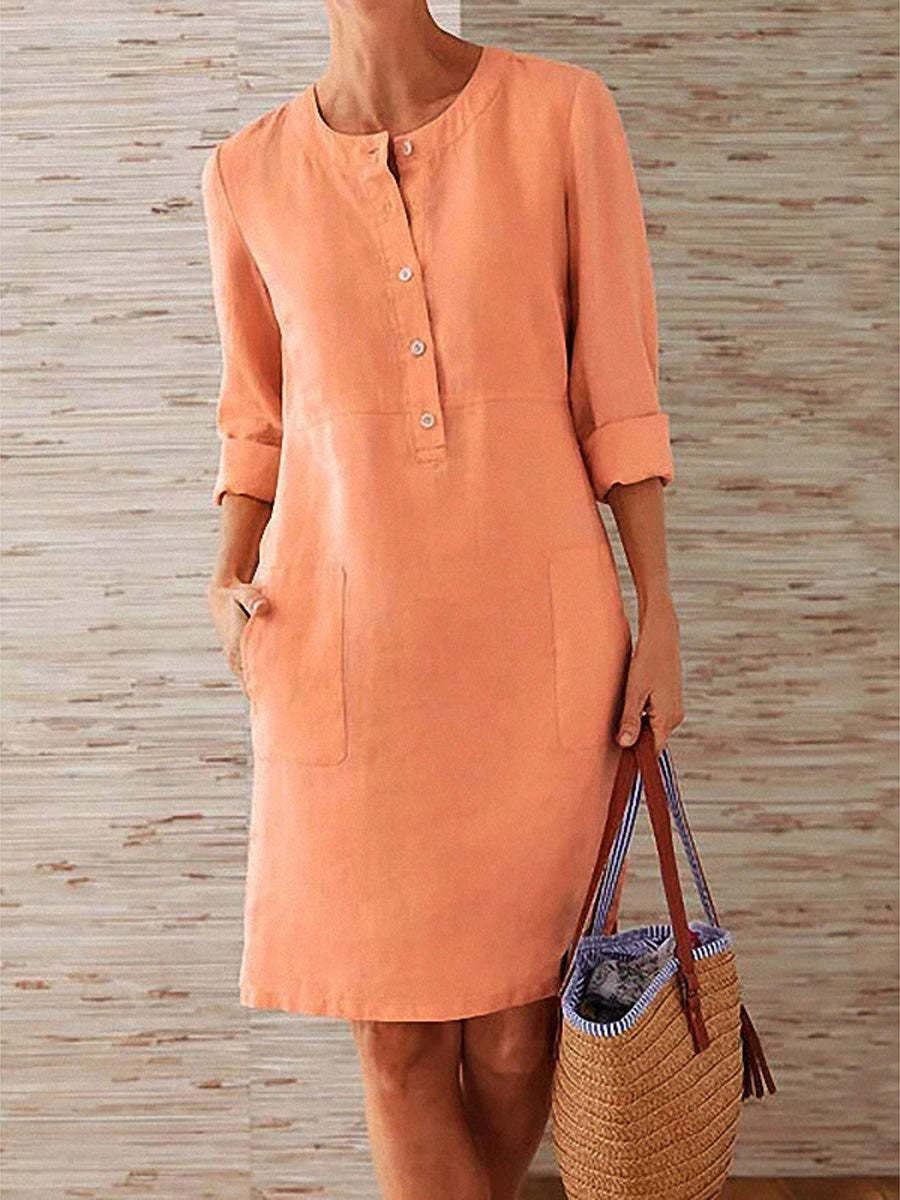 Vintage Casual Solid Linen Woman Dresses
