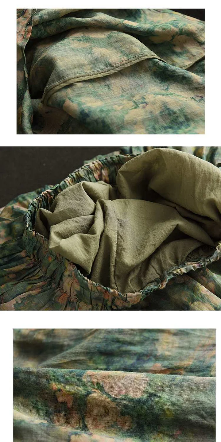 Bohemian Floral Print Linen And Cotton Dress