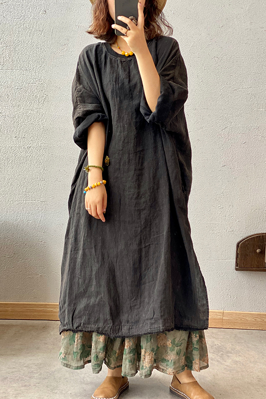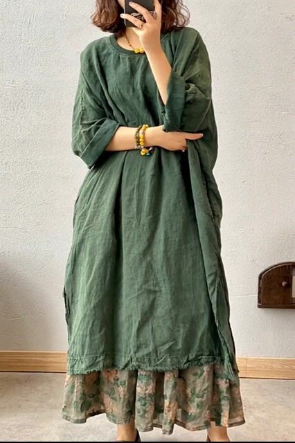 💯Nice oversized style - Women's Vintage Casual Solid Color Linen Dress And Skirt👏