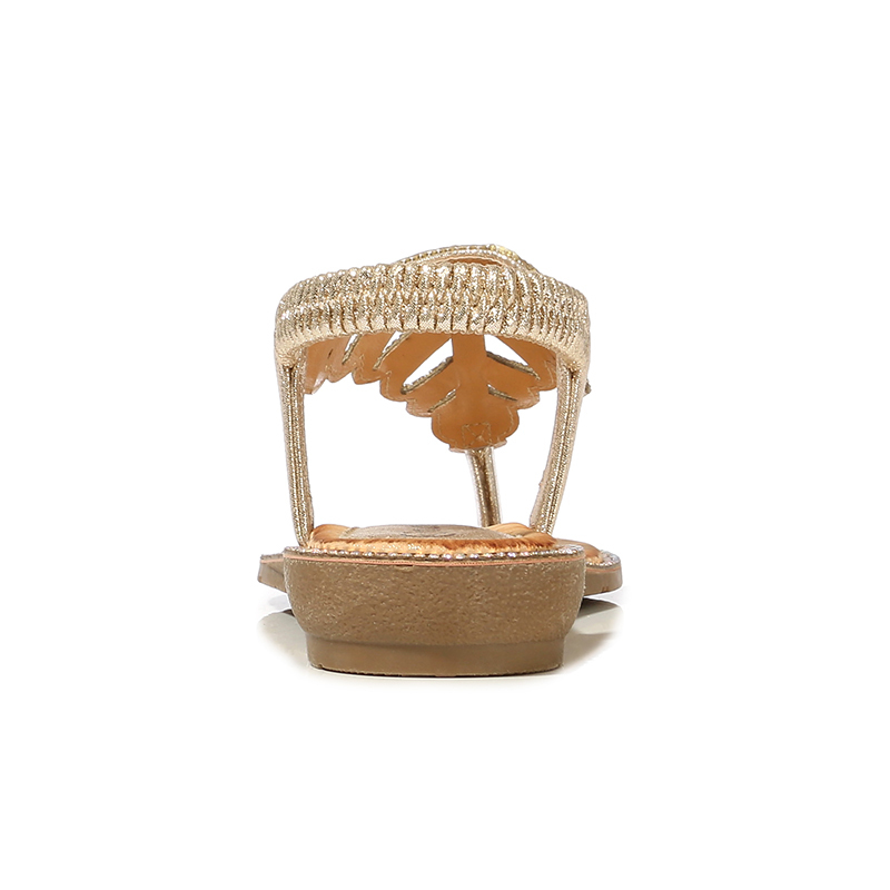 T-strap Leaf Rhinestone Flats Sandals