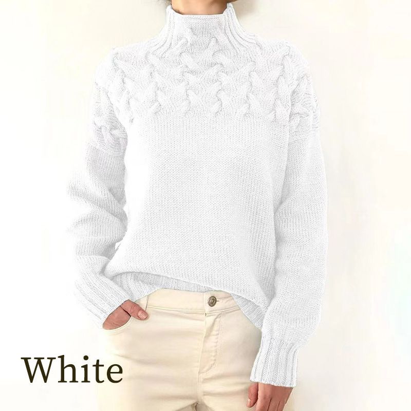 The unique knitting technique combined with the high neck in a solid color exudes sophisticated and intellectual elegance, whether worn alone or layered under a coat to make you look classy and chic.