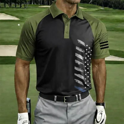 Men's Retro Patriot Color Block Polo Collar Short Sleeve