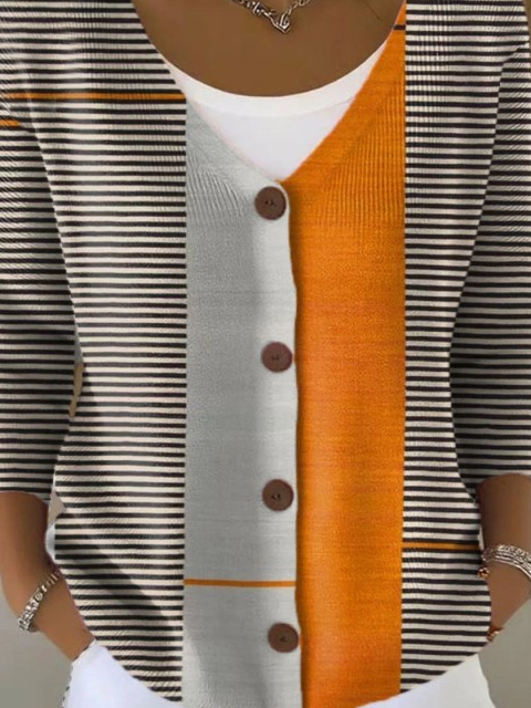Vintage Abstract Geometry Art Print Buttoned V-Neck Cardigan