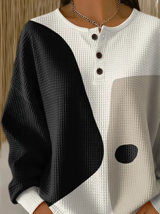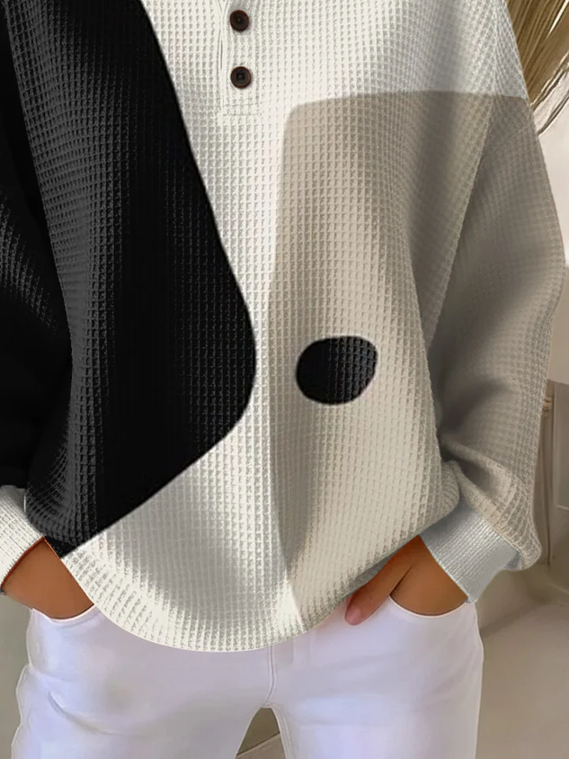 Women's Abstract Print Button-Up Casual Waffle Knit Sweatshirt