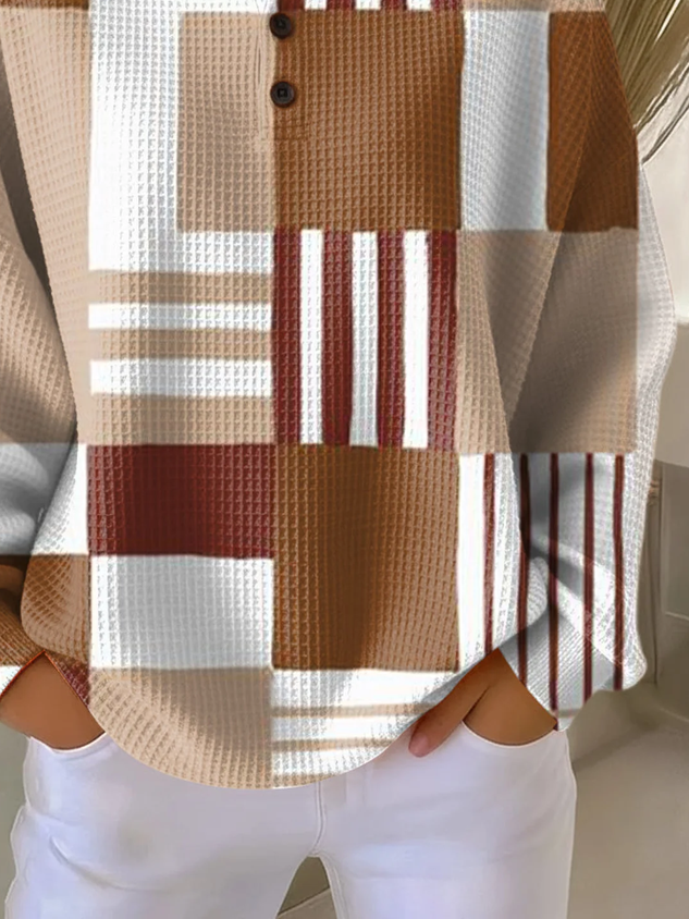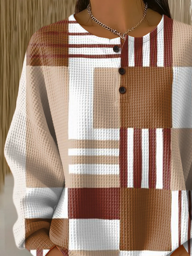 Women's Abstract Print Button-Up Casual Waffle Knit Sweatshirt