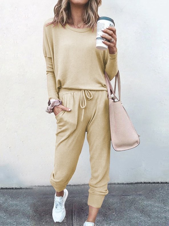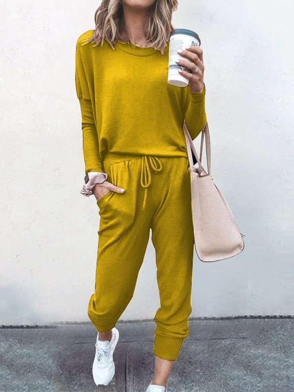 Women's Adjustable Strap Plain Daily Going Out Two-Piece Set Orange Casual Spring/Fall Top With Pants Matching Set