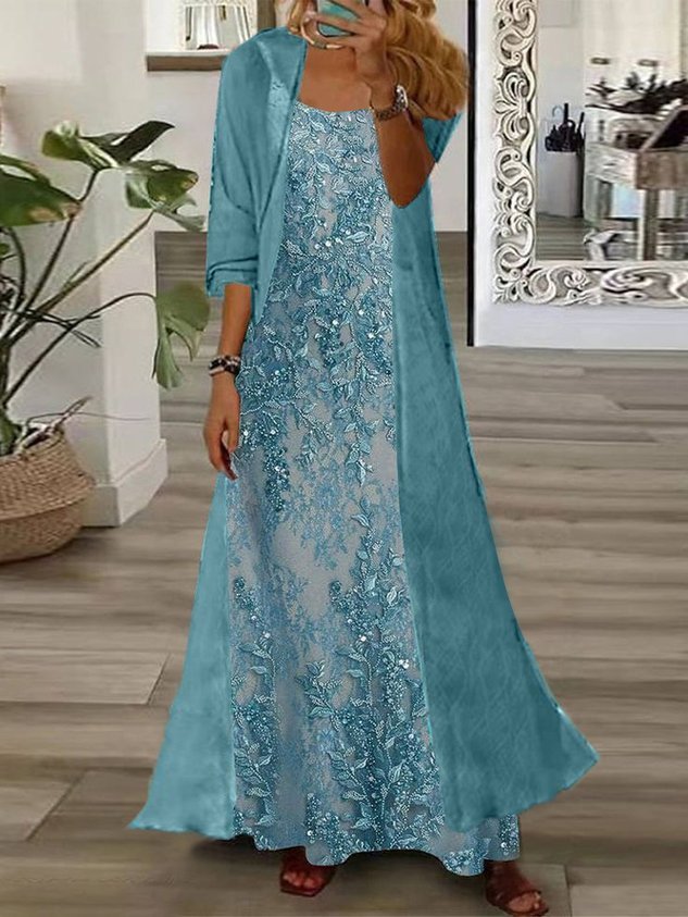 Women's Vintage Floral Print Casual Print Two-Piece Dress