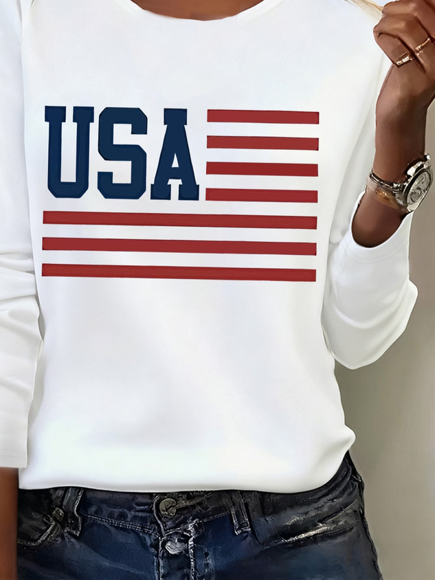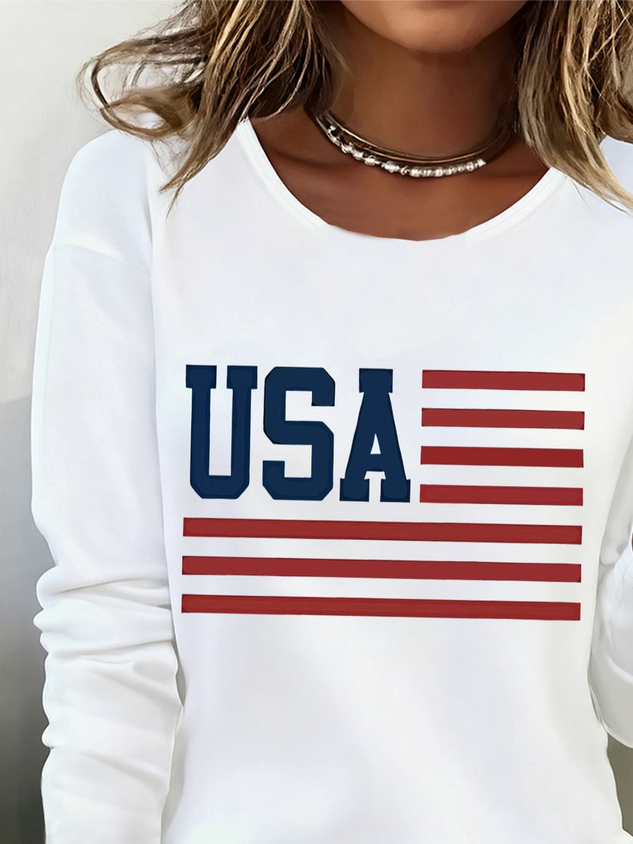 Women's Long Sleeve T-shirt Spring/Fall White America Flag Printing Jersey Crew Neck Daily Going Out Casual Top