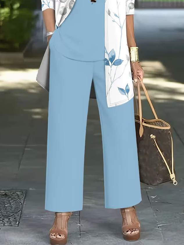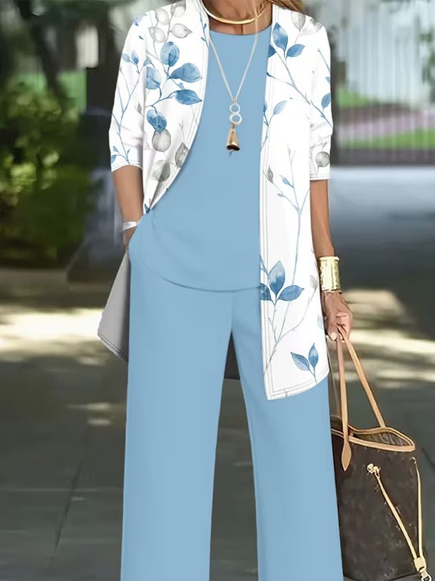 Women's Printing Floral Daily Going Out Matching Outfit Blue Casual Spring/Fall Multi-Piece Set Matching Set
