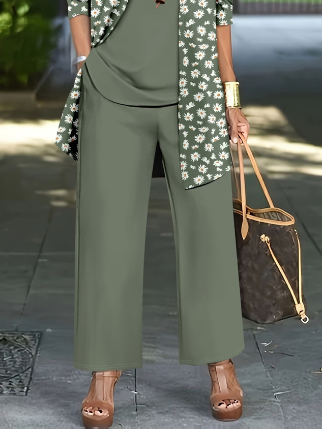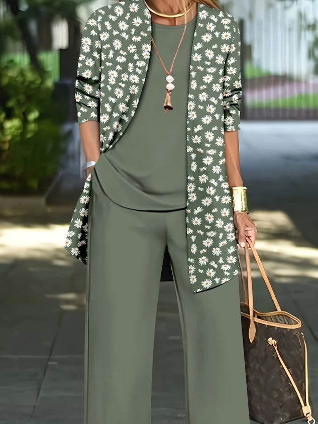 Women's Printing Floral Daily Going Out Matching Outfit Green Casual Spring/Fall Multi-Piece Set Matching Set
