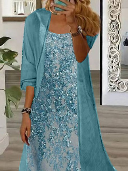 Plus Size Floral Casual Loose Crew Neck Two-Piece Set