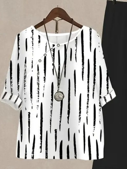 Women's Printing Striped Daily Going Out Two-Piece Set Black-white Casual Summer Top With Pants Matching Set