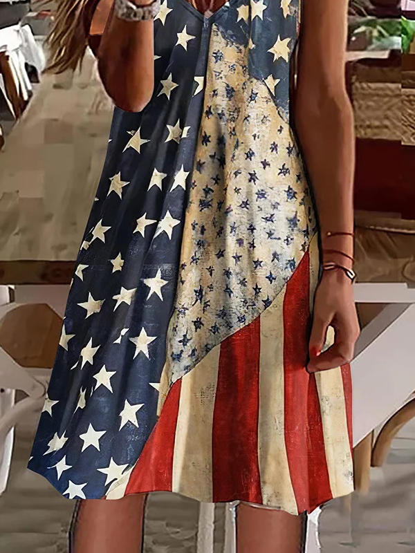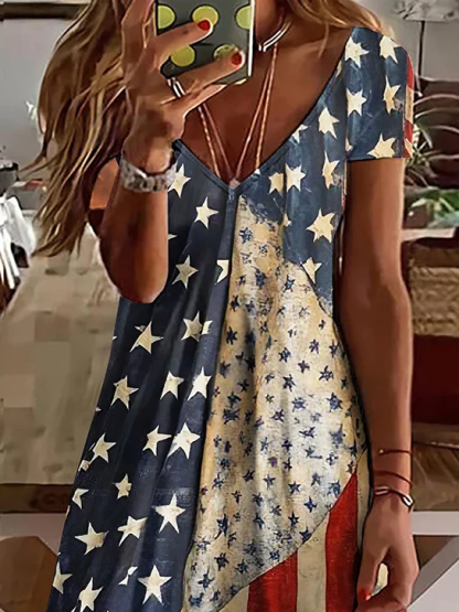 Women's Short Sleeve Summer As Picture Independence Day (Flag) Printing V Neck Daily Going Out Casual Midi A-Line Classic Dress