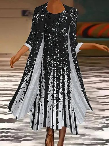 Women's Spring Floral Print Casual Print Two Piece Dress